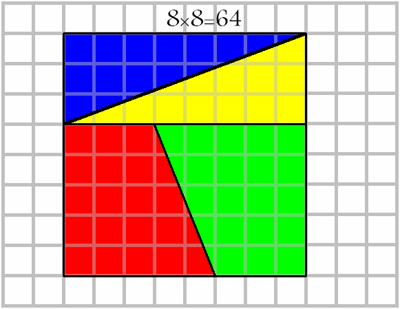 تصویری که در زیر میبینید یک تصویر متحرک است که با کمک از قاعده پارادوکس در علم ریاضی ثابت میکند که عدد 64 با عدد 65 برابر است.حال آیا شما میتوانید بگویید چرا این اتفاق می افتد؟(پاسخ خود را در نظرات اعلام نمایید)
